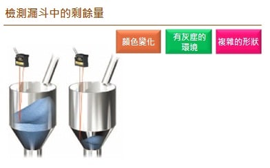 可使用遠距離反射型GV感測器作來管理料斗。另外可以設定上限、下限,因此可以控制塑粒的開始供應及停止。