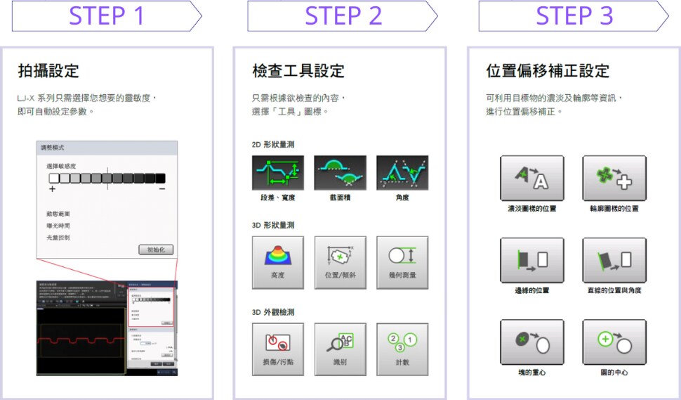 除了直接支援Linux, Python, Halcon, VisionPro, Cognex Designer, Labview…等,LJX系列可輸出CSV格式點雲資料、BMP/TIFF格式影像,支援用戶端軟體或第三方視覺軟體處理