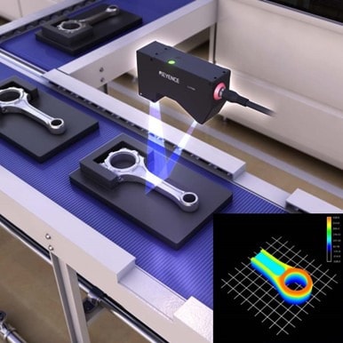 利用2D雷射掃描器擷取並量測物體表面輪廓。感測器內含多種工具,可用來量測高度、寬度與及截面積。進行3D分析時,將擷取的2D輪廓加以組合,以建立樣本的3D影像,然後加以分析。