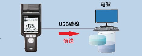 數據可記錄在內部緩衝記憶體,也可用USB纜線傳傳送至電腦。