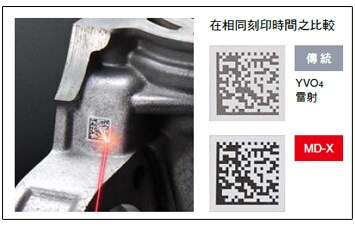 1994年,KEYENCE 推出當時全球最小尺寸、劃時代的CO2 雷射刻印機。之後又開發出 YAG、YVO4、光纖雷射刻印機。活用各種共振方式的優點,不斷的進行商品開發。在追求「兼具以往只能二選一的 YVO4 雷射與光纖雷射優點」概念下,MD-X 系列因此問世。