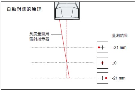 * 以內建 CAMERA 監控長度量測用雷射指示器。由指示器位置找出焦距,進行自動對焦。有些工件的材質或形狀、表面狀態可能無法量測。