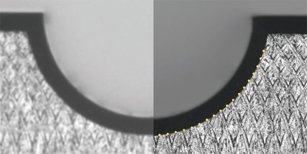也可量測如針般的前端尖銳處。此外圓筒的外徑,也可透過平行穿透光防止光線繞射,達到穩定的量測。