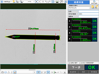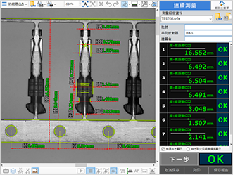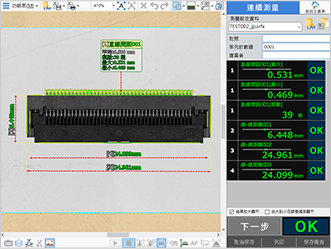 可一次量測各端子插入處的中心間距及外型尺寸。