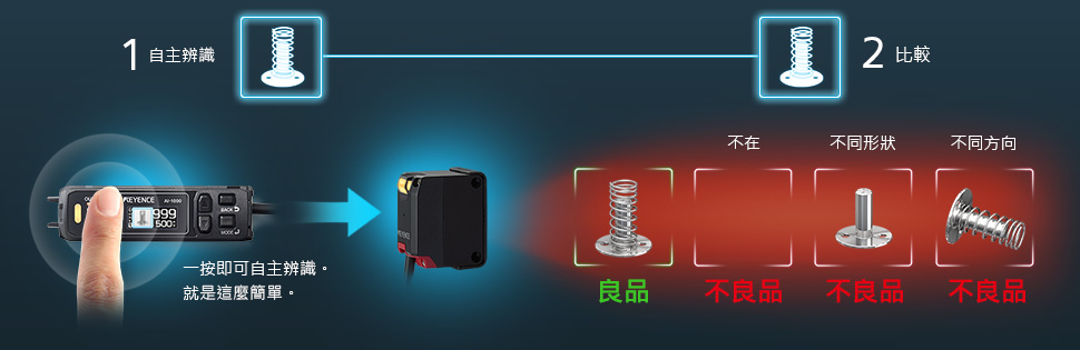 新功能「AIA(自動智慧調整)」 穩定檢測工件之能力超越傳統的光電感測器及位移計。