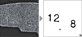在隨機鑄件表面中,強調更大的凹凸資訊刻印部分。