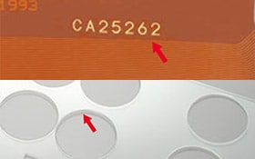 細線型雷射最適合在電子部件等狹窄的空間內進行刻印。3軸雷射控制可校正因安裝時的細微偏移所造成的變形和移位。細線型雷射在刻印範圍的中心和邊緣都能實現效果統一、位置精確的刻印。