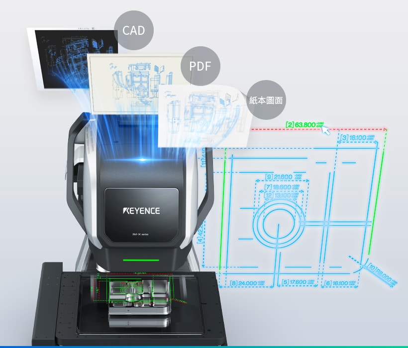 可從 CAD/PDF/紙本圖面 中自動擷取量測位置、公差等資訊。再也不必一邊閱讀圖面、一邊手動建立量測設定程式,瞬間完成設定,讓量測流程更高效。