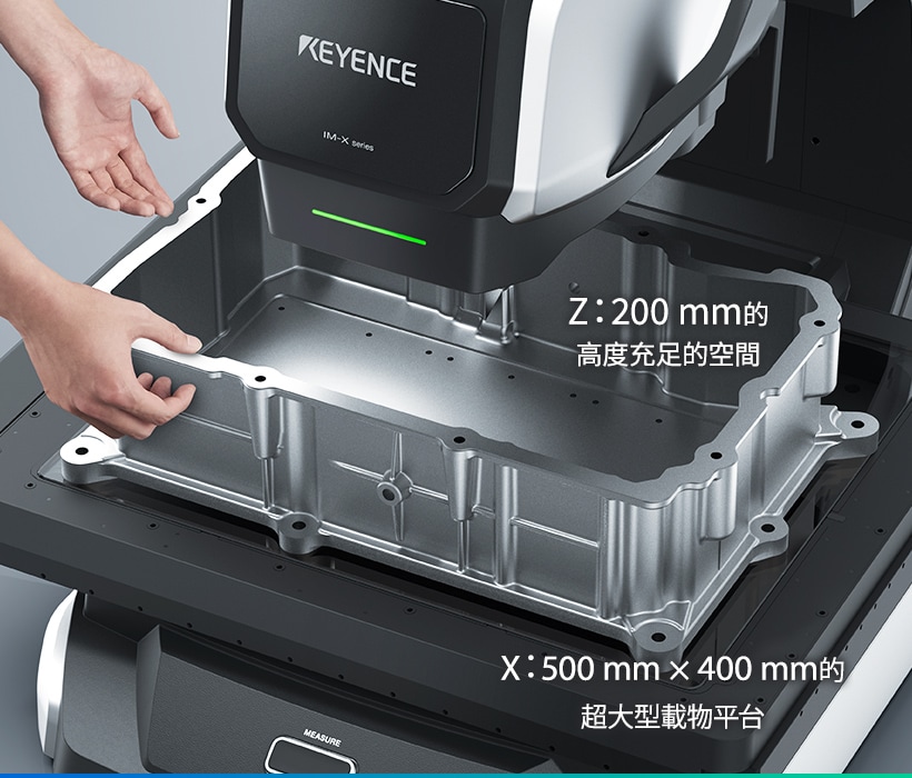 可量測範圍較以往擴大 3.3 倍,可量測目標物的最大高度亦提升至 約 2.7 倍。以往因體積過大而無法測量的工件,如今皆能一次完成量測。