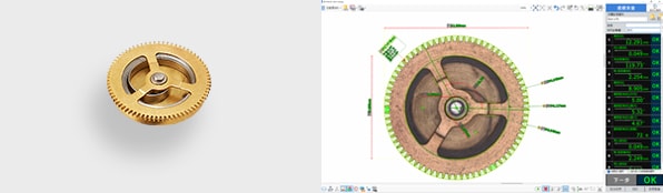 透過光學50 倍、2000 萬畫素的高精細影像,細微之處亦清晰可見。實現±0.1 µm 的高精度量測。