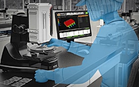 量測多點時,必須高精度且高速地掃描目標物。 因此往往會將時間耗費在移動載物台上,難以執行全數檢查。然而 WI-5000 系列以面執行同時量測,所以能夠大幅縮短量測時間,實現全數檢查。