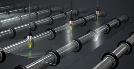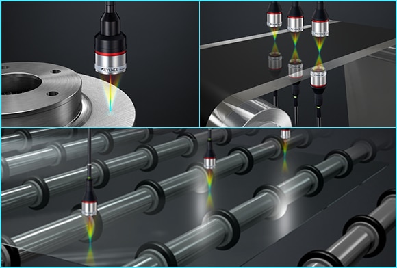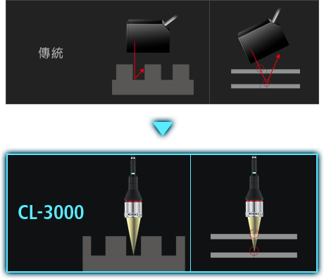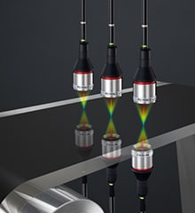 採用「多重色彩共焦方式」。量測範圍廣,且能因應多重反射,面對任何形狀、材質都能高精度量測。