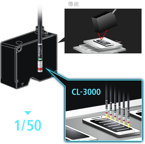 產品陣容新增業界最小的φ8 mm超小型感測頭。過去放棄安裝的部位、並列安裝等等限制不復存在。