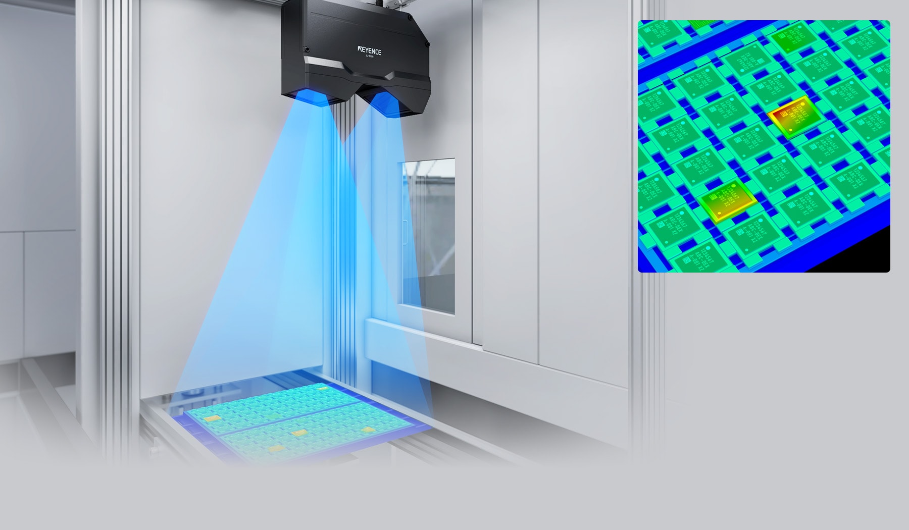 與以往的面型CAMERA僅提供濃淡資訊不同,這款3D尺寸測量儀還能結合高度資訊進行檢查,實現穩定的檢測。