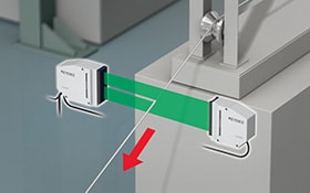 綠色LED光以均勻的平行光束發射。當目標物遮斷此光束時,會在受光元件上形成陰影,測量此陰影即可準確反映目標物的尺寸。