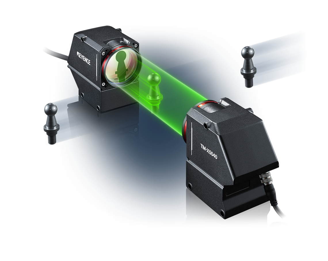 發射器以綠色LED發出平行光,將陰影投射到接收器的CMOS感測器上。測量則利用所捕捉到的影像進行。TM-X5000 系列在發射器和接收器均配備遠心鏡頭,確保穩定且高精度的測量。