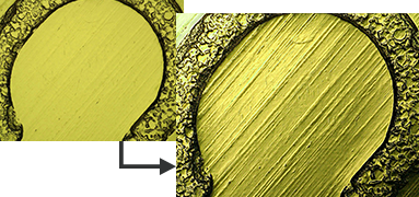 評估表面形狀的深淺和粗糙度時,形狀的高低差越小,對比度越低,因此越難觀察和評估。以往顯微鏡的缺點是由於照明和角度不同,影像的視覺效果也不同,容易因反射而產生光暈,並降低對比度。結果就是很難觀察到淺淺的凹陷,而將其遺漏。4K數位顯微鏡VHX系列具有多重照明功能,可自動獲取全方位的照明資料。從中選擇最適合觀察的影像,可大幅縮短照明設定的時間。