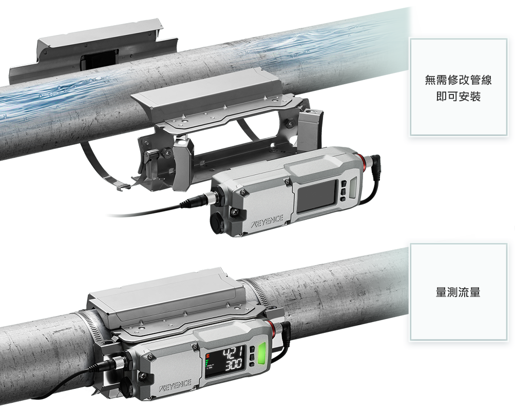 FD-R系列可固定於最大200A的管線,各種管線材質與液體皆能檢測。