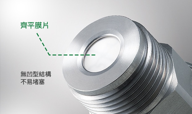 優異的辨識度使設備狀態一目瞭然,採用齊平膜片結構就不會發生凹陷,異物難以堵塞。