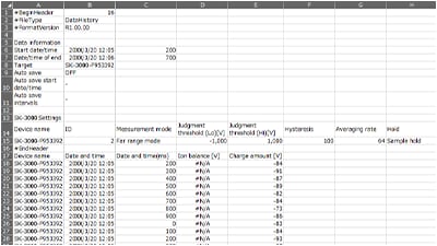 在靜電消除器的前後方安裝感測頭 SK-300,可依時序將因目標物或環境變化而產生的靜電消除效果記錄於 PC 中。此功能在設備導入、生產線變更或定期檢查等作業的驗證過程中,能發揮極大效用。