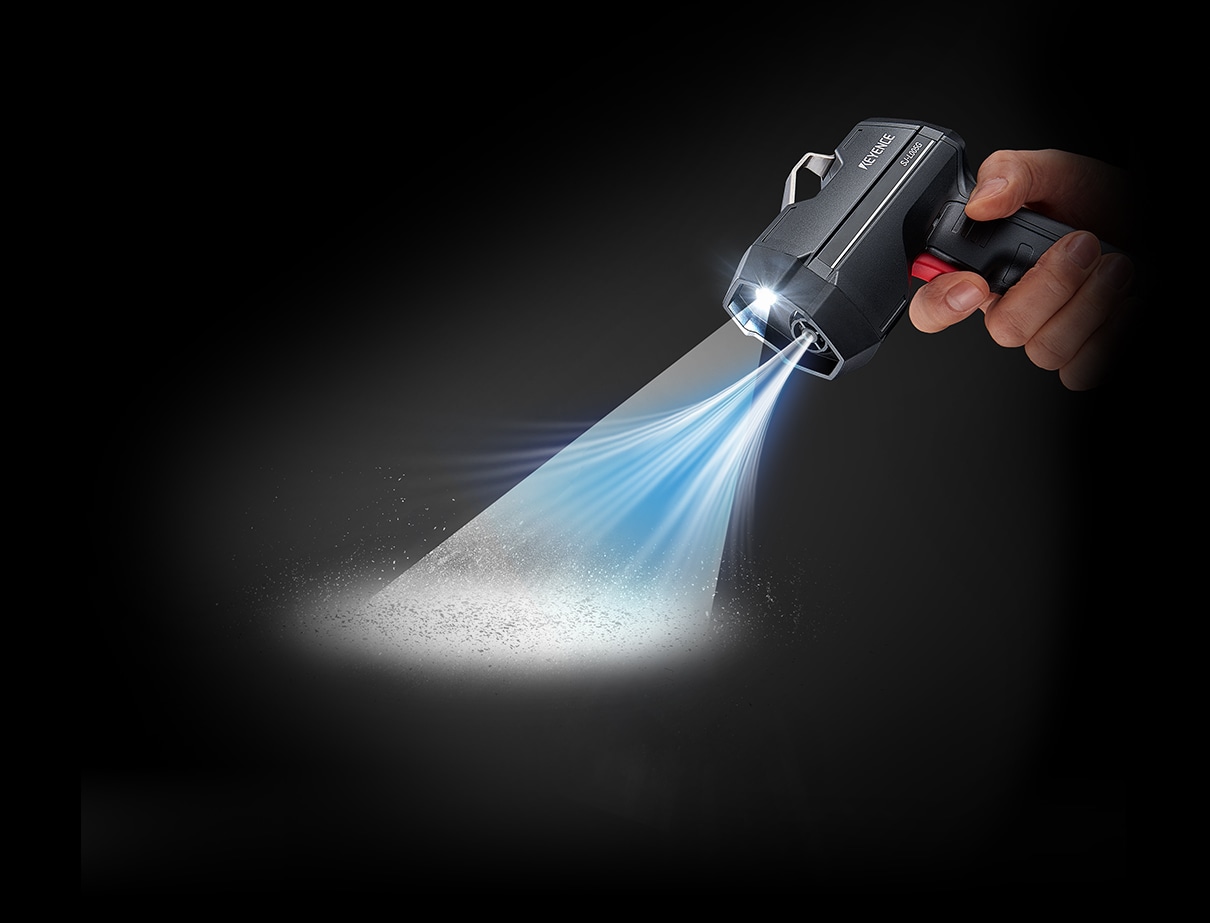 採用噴射引擎也使用的拉瓦耳噴嘴結構,噴氣流速超越音速。超高速氣流搭配離子吹拂,除了可去除異物沾附外,也可防止再次附著情形。