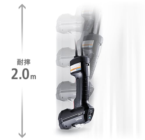搭載可承受強烈衝擊的橡膠材保護器,實現從 2.0 m高摔落也不會損壞的超堅固機身。壽命長、耐久性高,即使在使用頻率高的現場也可放心使用。