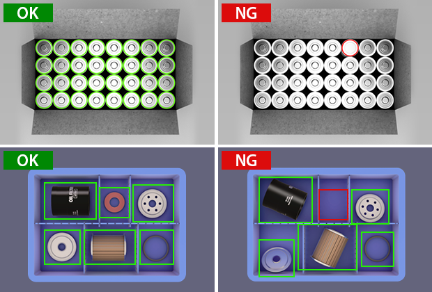 簡單登錄OK 品和NG 品即完成設定。最適合應用在有無辨別的AI 技術,取代人腦完成最佳設定。
