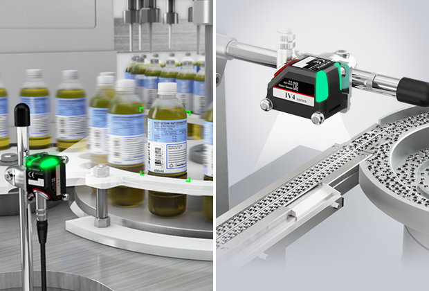 IV3 系列為搭載AI 技術影像辨別感測器新一代產品。不論拍照 (成像取得) 或判別檢測皆由AI 技術輔助,同時強化有無、判別的檢測能力。檢測時,只需框選想要強調的特徵點,由AI 輔助取得成像;檢測時只需登錄OK/NG 影像各一張,即可完成設定。使用者不需具備專業視覺系統知識,不再需要耗費大量精力與工時即可輕鬆導入運用。內建鏡頭與照明的一體化設計,再也不需要搭配外部照明等外部機器;檢測時也無須擔心環境光影響。另外,放大器內部搭載高性能CPU;檢測時無須搭配電腦。超小型感測頭機種對應50~3000 mm安裝距離,視野範圍最大達2730 X 2044 mm,可活用於各式生產現場。