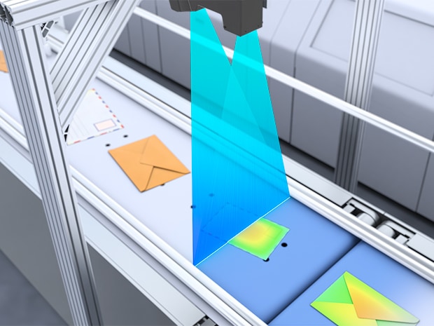 藉由最快16 kHz 的取樣,可以穩定量測搬運中郵件的大小和厚度。不受信封的顏色和設計等影響,對設備控制的穩定性有所幫助。