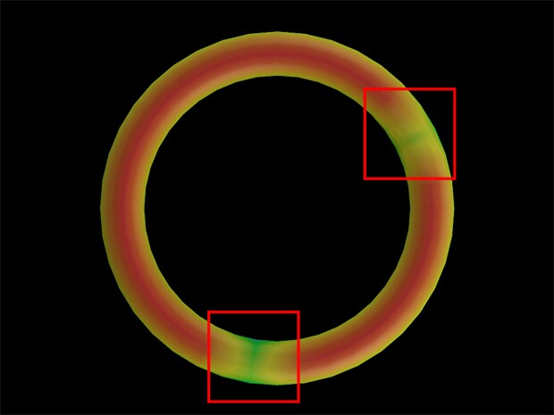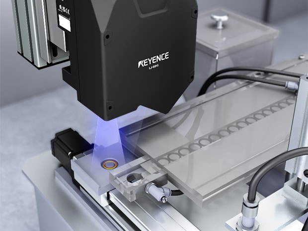 傳統CAMERA 難以穩定偵測顏色差異不明顯的O形環。採用可取得3D 資料的LJ-S8000,透過高度差異而非顏色進行判定,可預防不良品流出。