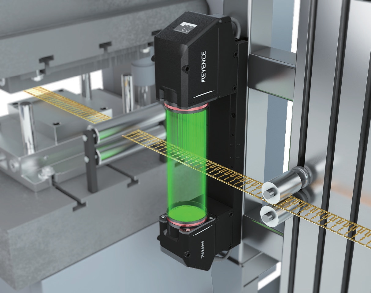沖孔後立即進行端子零件的尺寸量測,沖壓發生異常時若及時發現,有助於提升良率。TM-X 系列測微計既高速亦不失校正準度,能夠進行全數檢查,並保證量測值的可靠性。