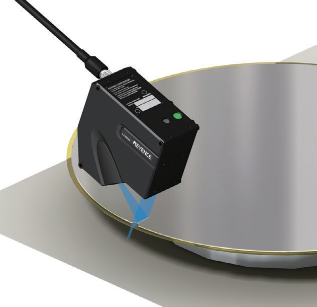 以往是用 1D 雷射位移計來檢測凹口位置。隨著晶圓愈來愈薄,翹曲幅度也變得較大,因此出現了光點不準的問題。由於 LJ-X 系列使用了線性雷射,可因應因晶圓翹曲所造成的位置偏移問題。
