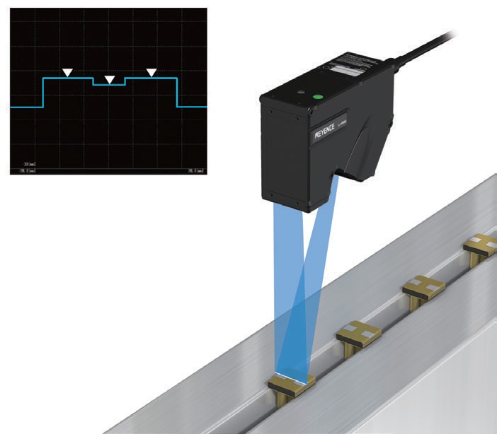 照射 2D 雷射光來量測端子高度及平面度。LJ-X 系列搭載「全方向位置補正功能」。在線上量測時可實現穩定的全數檢查,不受目標物錯位或傾斜影響。