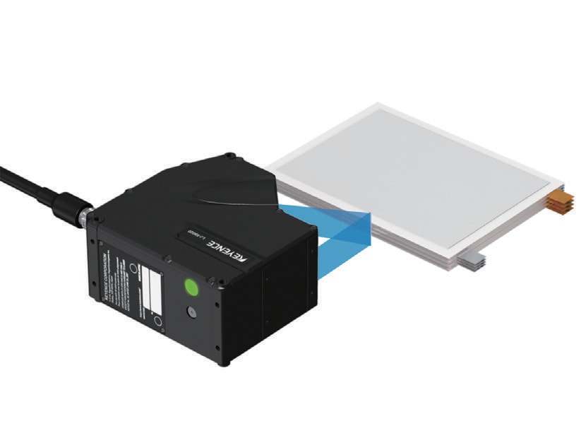 檢查積層工序後是否存在積層偏移。LJX 系列的X 軸解析度最小可達2.5μm,可正確量測每一片電極的形狀。