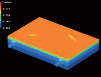 檢查單元單體的外觀。對於角部產生的凹陷以及側面產生的傷痕等,不僅使用明暗影像,還使用3D 形狀進行檢查,可正確檢查。