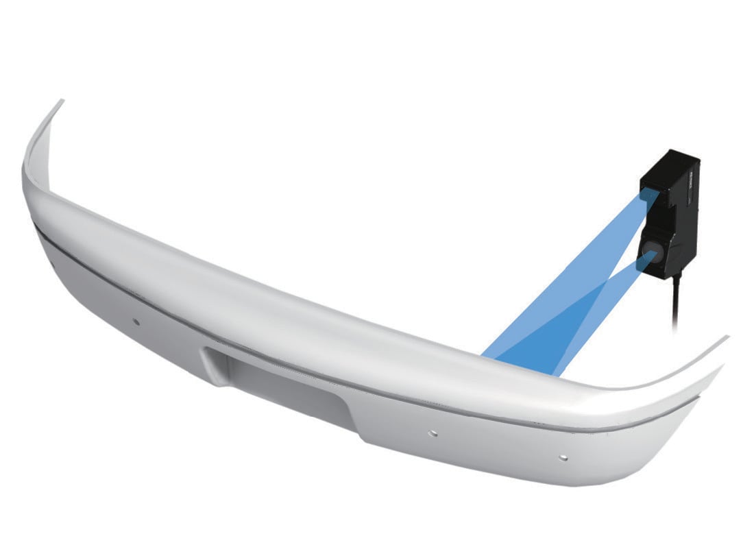 在將感測器安裝至車體上時,量測車體位置及角度。LJ-X 系列擁有最大 720 mm 之較大的量測範圍,即便是車體般較大的目標物,也可簡單進行檢查。