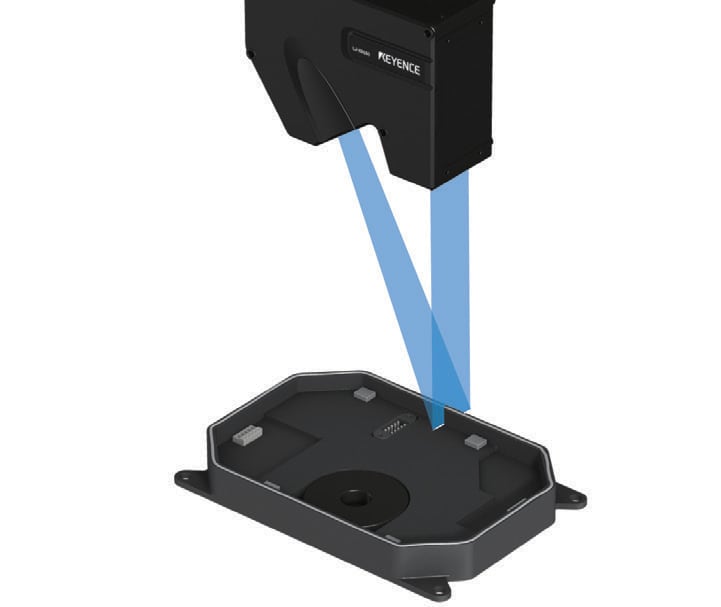 量測外殼的密封材料高度。可正確量測無法單以面積判斷的塗布量。由於是以形狀識別目標物,並非透過明暗程度,可不受到外殼及密封材料顏色的影響,達到穩定的檢查。