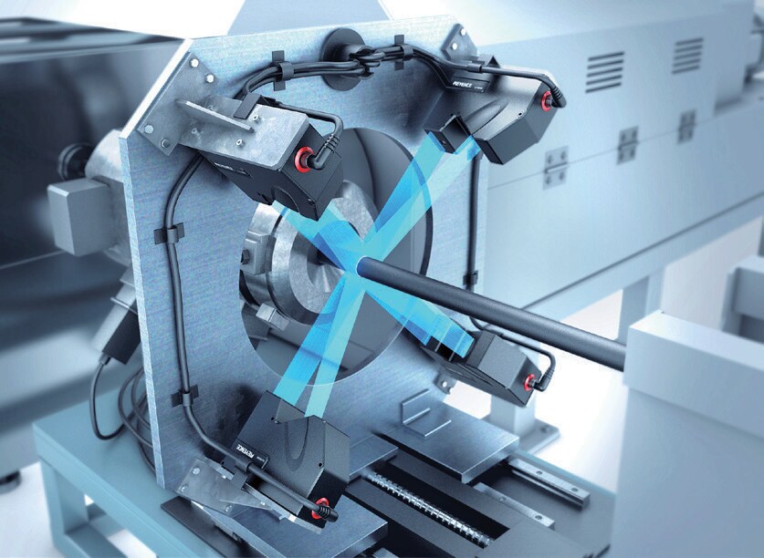 僅靠對照型的外徑尺寸測量儀無法檢測凹陷。因此使用2D 位移感測器,來檢測被覆纜線上的凹凸狀況。透過每秒 16000 次的高速取樣,可更確實地檢測到凹凸狀況。