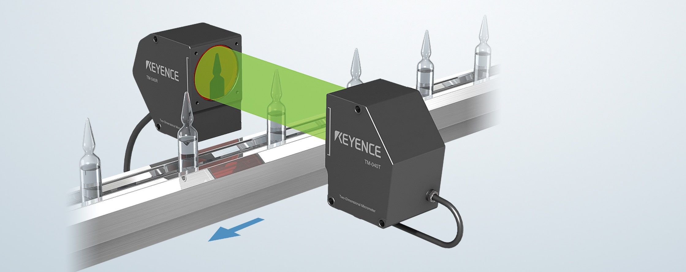 遇到透明且顏色多樣的安瓿等物體時,以往通常會使用影像處理檢查,但裝置維護後的校正作業相當耗時。TM 系列測量儀具有可追溯性,可大幅減少調整的工時。