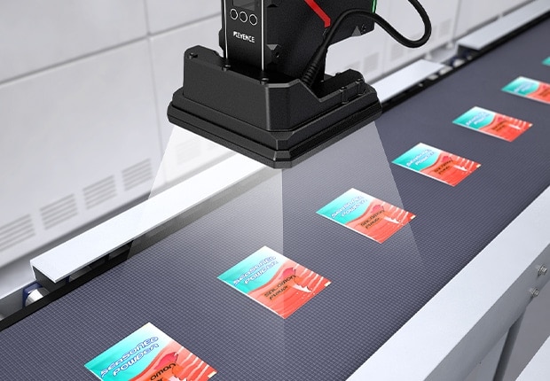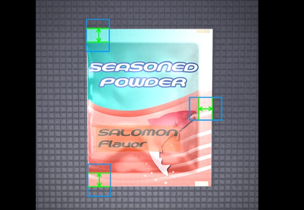 包裝袋的密封條寬度檢查對圖案、凹凸、光暈等難以進行穩定檢查。只要使用「LumiTrax™ 功能」,就能以密封條部分的凹凸資訊進行形狀檢查。