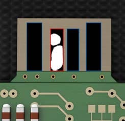 這是印刷電路板端子的外觀檢測案例。以往的照明條件下,端子部分的色調、光澤與髒污部分的差異有時很難辨識。使用多光譜模式連些微的髒污位置也可擷取,可穩定檢查。