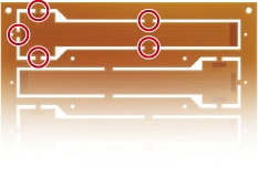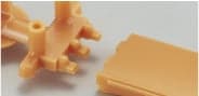 右例為柔韌的PCB成型後的狀態。紅圈的澆口部分經壓模切割。