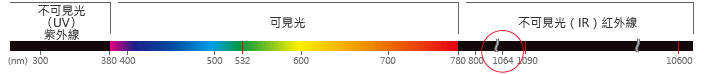 有時也被稱為IR,IR是英語infrared的縮寫,用來表示紅外線。紅外線正如其名,指的是在紅色以外,肉眼看不到的波長(長於780 nm的光),並不是指IR=1064 nm。