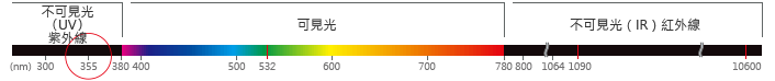 波長為基本波長的1/3,被稱為THG(Third Harmonic Generation:三次諧波)雷射。此外,因屬於紫外線領域的雷射,也被稱為UV雷射。將基本波長透過非線性晶體轉換成532 nm的波長加上基本波長,再經由另一個單晶,轉換為355 nm的波長。