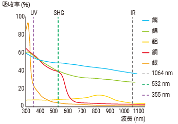 - 各種材質的吸收率高,也容易對金或銅等反射率高的工件加工。