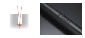 透過熱處理讓表面氧化,可得到清晰的黑色刻印。可將雕刻、凸起控制在1 μm以下,因此也可將對精密金屬零件的損傷降至最低。