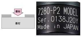 - 基本波長的雷射刻印機最為適合,透過散焦減降能量密度,不雕刻而實現黑色刻印。使用高功率輸出型雷射刻印機,即可更高速刻印。