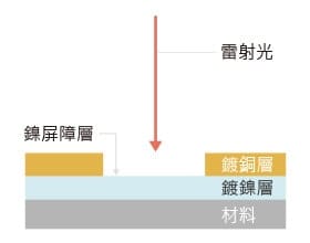 用雷射照射並除去刻印目標物的表面被覆或電鍍。這麼一來即可看到底色,讓刻印浮現。