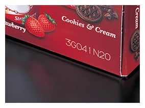 以高功率燒灼目標物白色底面的刻印。由於不需變更紙箱設計,可順利取代印章等印製方式。