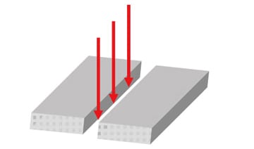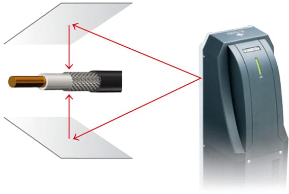 另外,使用鏡面的SUS材料等反射雷射光,就可以同時對電線表裏進行切割加工。一個製程就能完成表裏加工,可大幅減少產距時間,有助於提升生產效率。